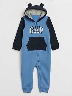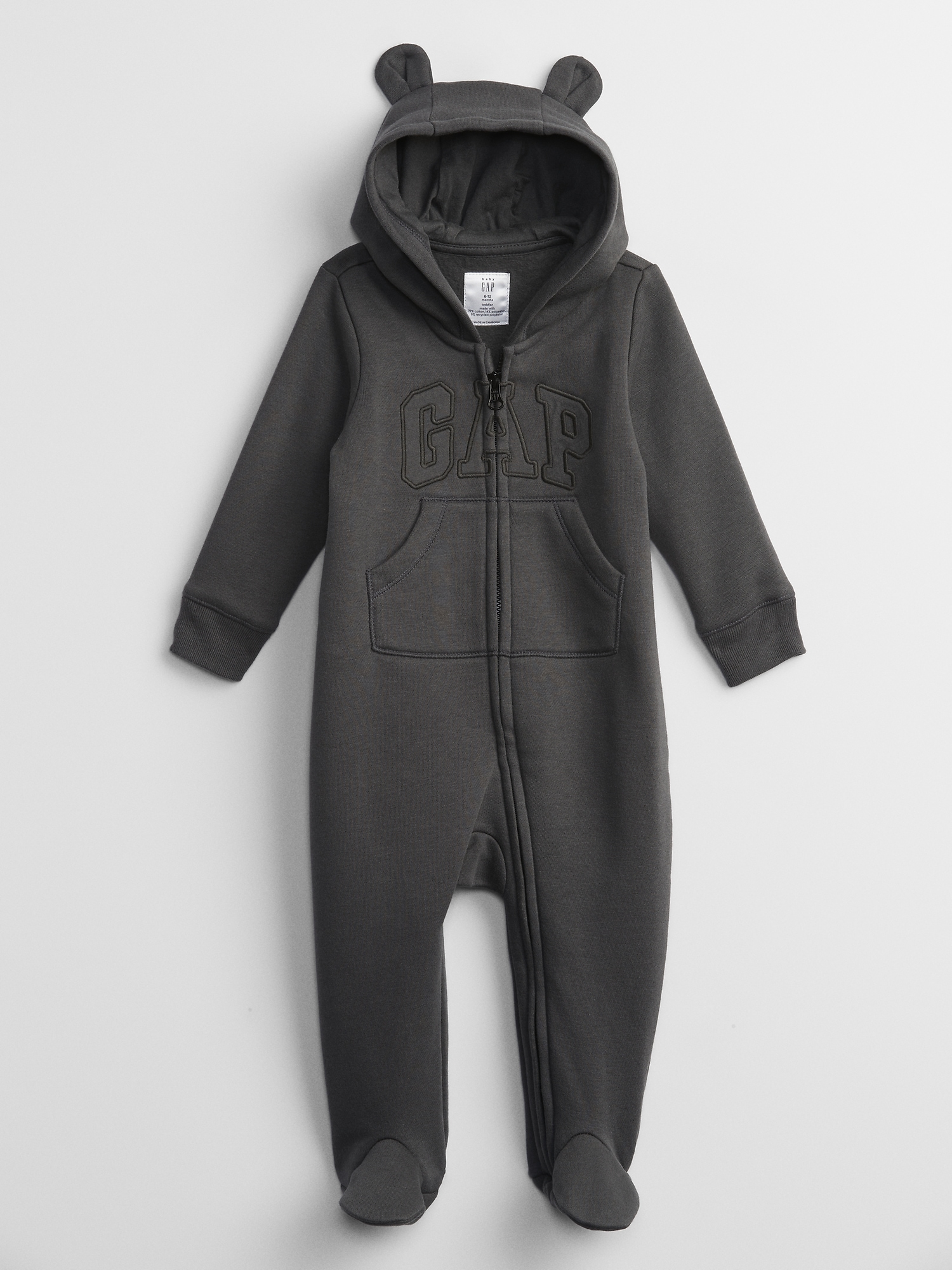 Baby Gap Boy Arch Logo Zip Bear Hoodie One Piece Fleece Romper Gray 12 18 Mo Nwt 19 99 Picclick