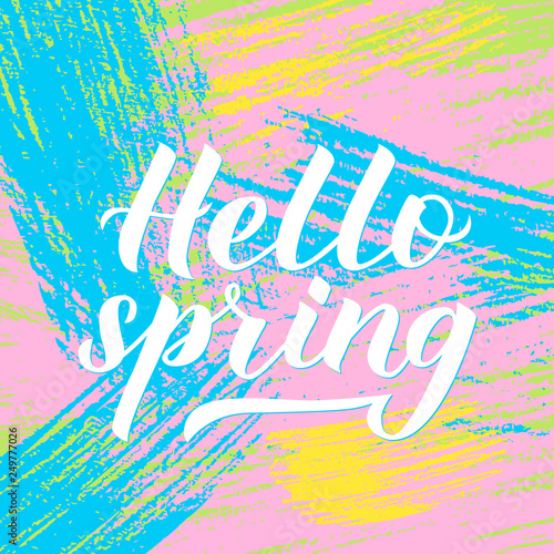Hello Spring Calligraphy Lettering Bright Colorful Brush Strokes Inspirational Seasonal Quote Typography Poster Hand Written Logo Design Easy To Edit Vector Template For Banner Flyer Badge Stock Vector Adobe Stock