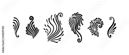 Set Of Decorative Swirls Calligraphic Elements With Brush Strokes Black Vector Isolated On White Background Curves Curls Flourishes Graphic Art Design Stock Vector Adobe Stock
