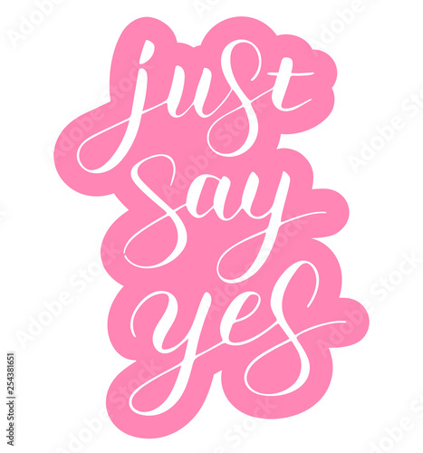 Just Say Yes Phrase To Propose And Pop The Question Hand Written Lettering Script Calligraphy With Outline Pink Sign Proposal Isolated Without Background Vector Art For Postcards Stock Vector Adobe Stock