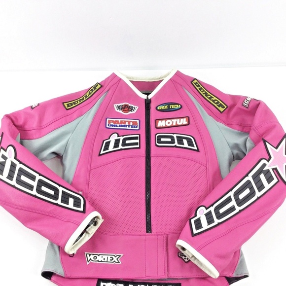 The specific helmets being recalled are the Alliance Dark helmets manufactured from January 2017 through July 2017 and the Alliance GT Horror and Rubatone helmets manufactured from March 2017 through July 2017. ICON wants to inform you that there will be a voluntary recall of certain Alliance and Alliance GT helmets produced during part of 2017. Icon Womens Motorcycle Pink Kitty Leather Jacket Size XL Patches Embroidery.