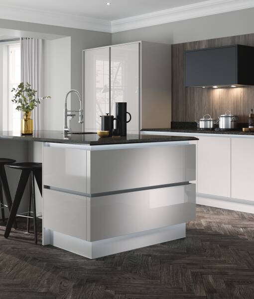 Opt instead for lighter shades and paint the walls white. Our grey gloss kitchens are great for something on the darker side. Grey gloss kitchens lend well to ultra-modern interiors where handle-free designs create a seamless streamline look.