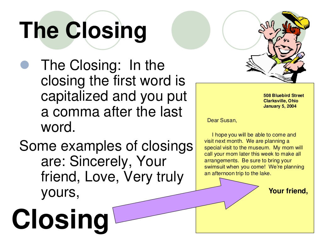 You can always have this printed out and make it a poster for your cl. If the correspondents are familiar enough and the recipient knows the writers address or if the stationery is imprinted with the return address then the return address may be omitted. Dear Name of Recipient 3.