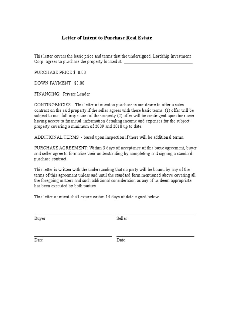 Buying and selling real estate is a very tough process. To signify your resolution as a buyer in acquiring the property you may combine the letter of intent to purchase real estate with a financial payment or an earnest payment. This Letter of Intent this Letter sets forth the mutual interest of.